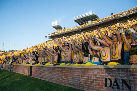 The traditional block “M,” carved from stone by the freshman class in 1927, still guards the stadium’s north end zone. Ninety feet wide and 95 feet tall, the Rock M has become one of college football’s most recognizable landmarks, enduring decades of pranks, rivalries, and celebrations.
